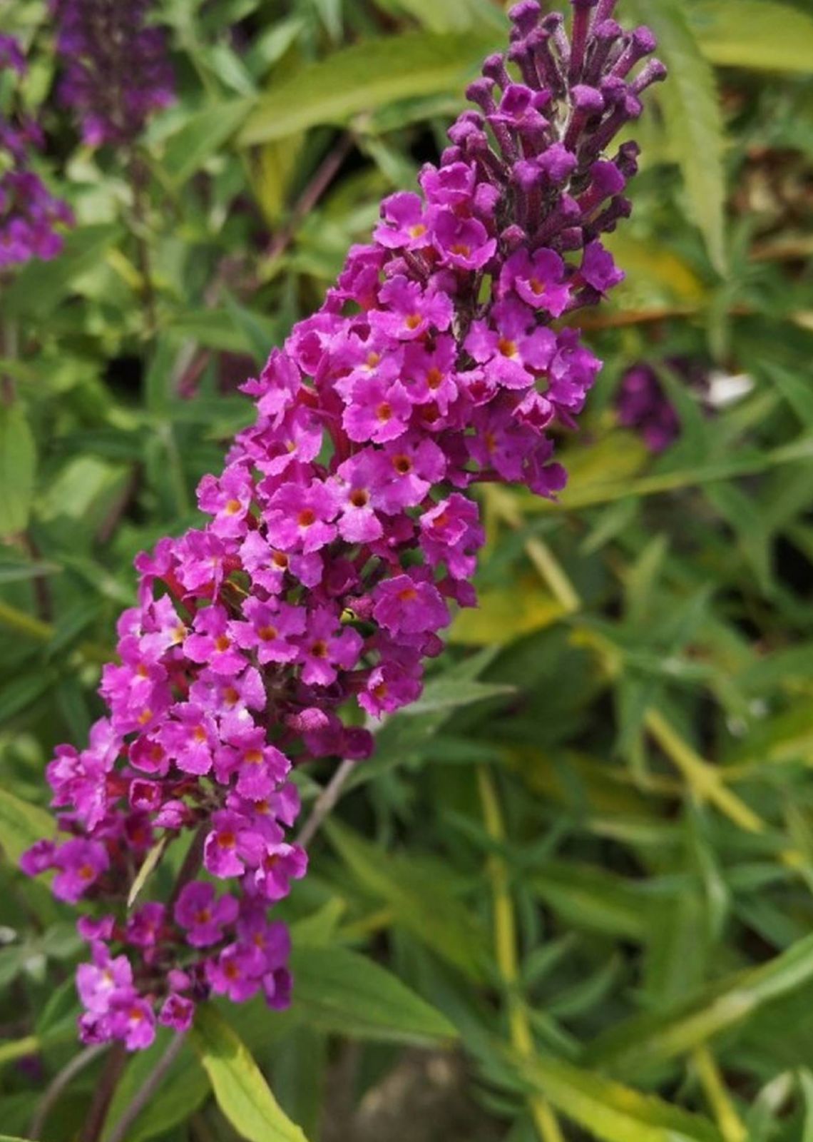 Virága illatos sötétrózsaszín bugavirágzat,amelyek csoportokba fejlődnek.